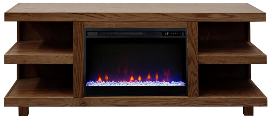 The Laurel Canyon 65 inch Fireplace TV Stand Console delivers the perfect blend of modern, urban style with rustic tranquility. Skillfully crafted from Oak Solids and Veneers, this robust Entertainment Center with Fireplace is available in your choice of three finish and features unique, open-ended shelving.Read More