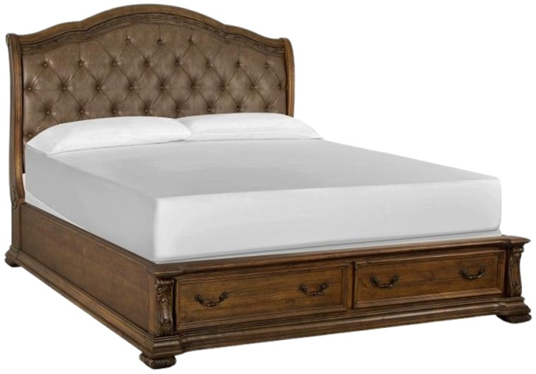 Antique brass hardware gives the room a warm metallic element while providing the perfect complement to Durango’s gorgeous willadeene brown finish. If you’re an admirer of traditional styling, this statement bed and coordinating storage pieces are a must-have.