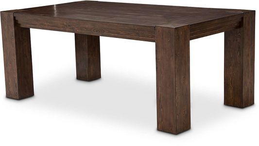 Dining table featuring a layered wood apron design, block legs and a smooth wood top with a Rustic Ranch finish.Read More
