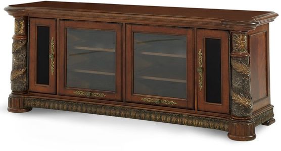 The Look And Feel Of Old World Spain Have Been Beautifully Captured In This Grand Collection, Designed Exclusively For The Michael Amini Signature Series. Beautifully Crafted From Birch Solids With Cherry, Pecan, And Elm Burl Veneers, The Distinctive Marquetry And Intricate Embellishments Compliment A Classic Chestnut Finish. Uniquely Twisted And Shaped Marble Pilasters With Carved Wooden Leaves Wrapping Around Adorn Some Of The Pieces. From Its Marble Relief To The Unique Multi-Faceted Beveled Glass Encasements, Villa Valencia Is A Timeless Collection To Be Treasured Year After Year.