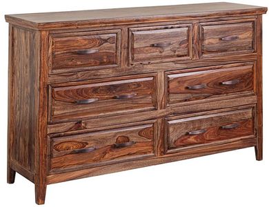 Made from solid sheesham wood, the Sonora Bedroom features an elegant two panel bed, framed drawer fronts, rustic gold hardware and traditional crown molding. The natural markings and rich color variation of natural sheesham wood are enhanced by hours of handcraftsmanship.Read More