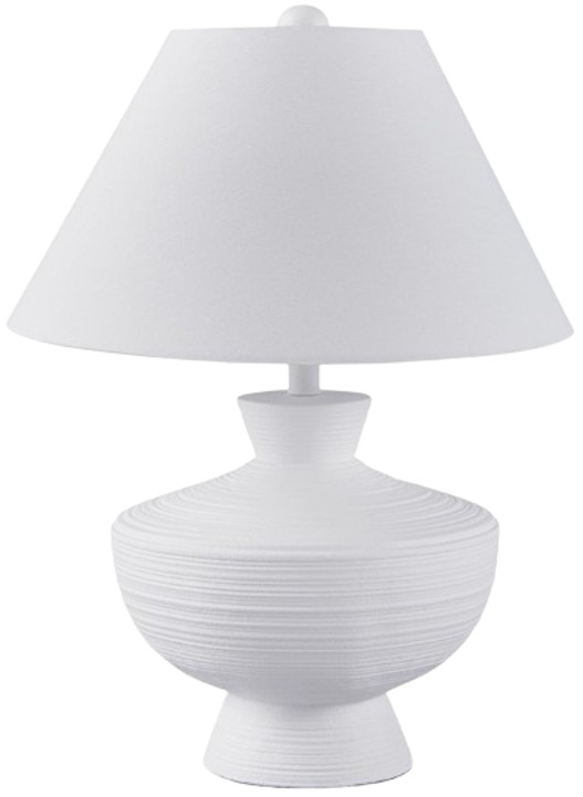 Cool, clean, and contemporary. This table lamp's sculptural base is a forward-thinking approach to fashionable function. Complete with a crisp white finish and horizontal stripe details, the piece is a striking addition to a sofa-side or entryway table.Read More