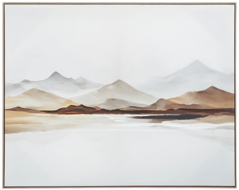 Bring the majesty of the mountains indoors with this landscape. An open expanse in the foreground contrasts and draws the eye to the rolling hills. The wall art takes a minimalistic approach to natural beauty, with neutral tones that make an impact in contemporary spaces.Read More