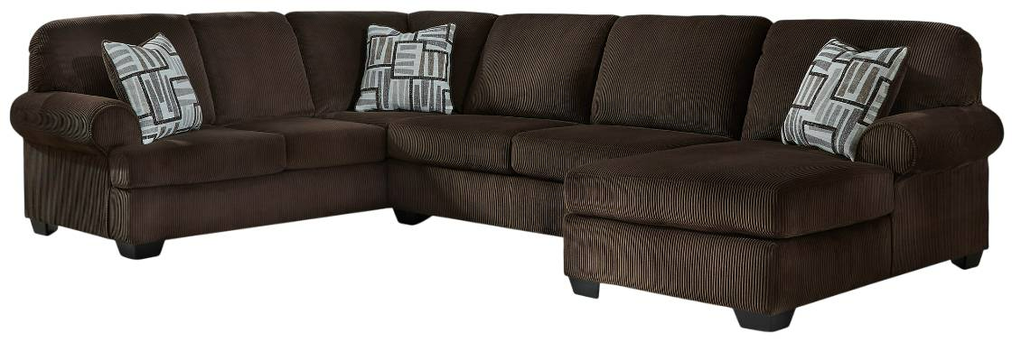 Cozy, casual comfort—made with everyday style in mind. This sectional with a chaise is a reflection of your transitional tastes. Its soft-to-the-touch fabric, in a versatile warm chocolate brown, is detailed with a subtle corded design for added flair.Read More
