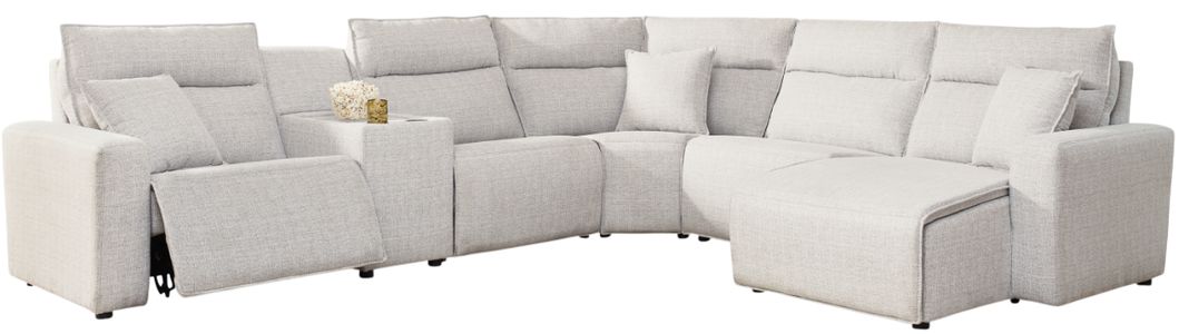 Includes 6 Modular Pieces: Left-arm facing power recliner, power armless recliner, armless chair, console, wedge and right-arm facing power chaise