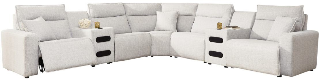 Includes 7 Modular Pieces: Left-arm facing power recliner, power armless recliner, armless chair, wedge, 2 consoles with audio systems and right-arm facing power recliner