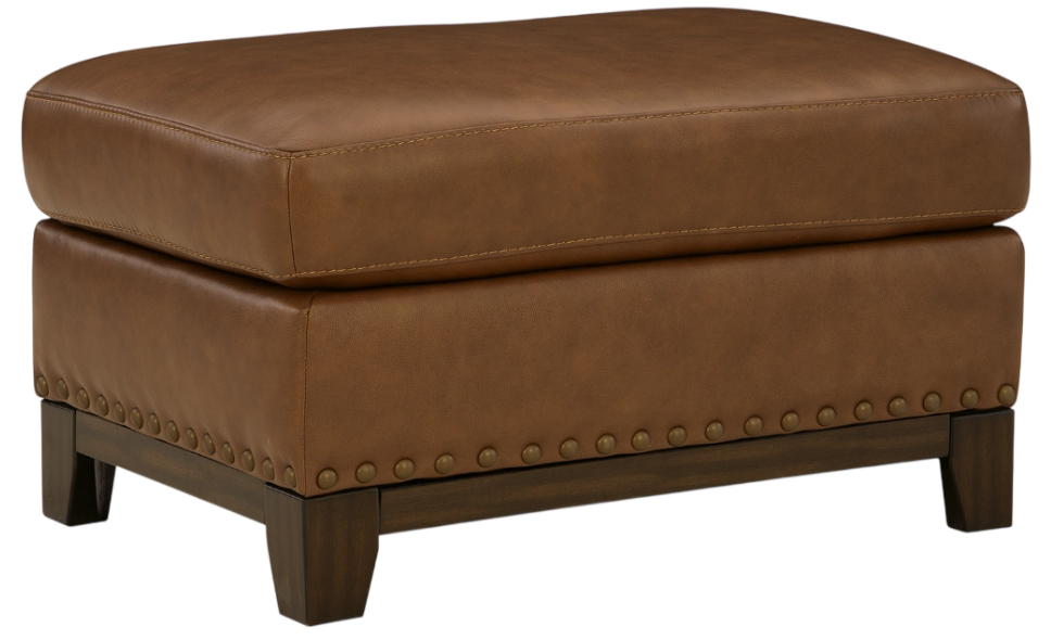 Effortlessly blending contemporary and classic elements for a truly timeless look, this ottoman offers a fresh take on transitional style. Its robust silhouette is coupled with skillfully matched leather and faux leather upholstery, while nailhead trim offers a touch of subtle sophistication. A pleasingly plump cushion with jumbo stitching provides exceptional comfort.Read More