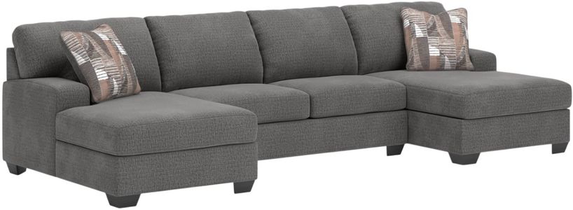 Why choose between classic comfort and modern design? This sectional with double chaise welcomes day-to-day relaxation in style. Its dimensional, menswear-inspired upholstery brings a designer touch to the easygoing silhouette.Read More