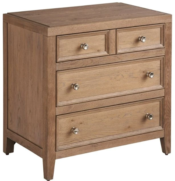 Accentuate bedsides with the Weekender Nightstand, designed with three spacious drawers and a simple silhouette. The calming knotty oak finish and dainty silver pulls add to its casually chic sensibility.Read More
