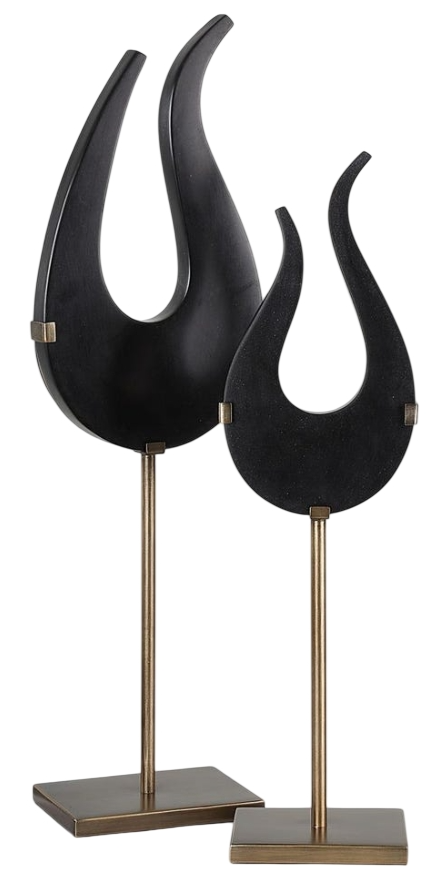 Sculptures are handcrafted from a man-made black stone, elevated a top brushed brass metal stands.. And this will be a great fit into your house and that gives a ample design on it.Read More