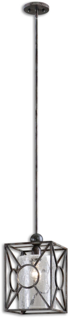 Rust Black Finish With Aged Gray Undertones And A Crackled Glass Cylinder Inner Shade.Read More