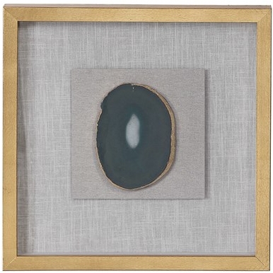 A Pine Wood Shadow Box Featuring A Hand Applied Gold Leaf Finish Showcases A Striking Emerald Green Agate Stone With White Veining, Accented With Hand Painted Gold Edging. Mounted On An Off-white Linen Backing.Read More