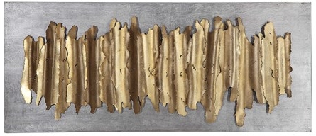Iron Wall Art Featuring Layers Of Metal Strips With Crude Edging, Finished In An Antique Gold Leaf And Set On A Distressed Silver Leaf Iron Backing